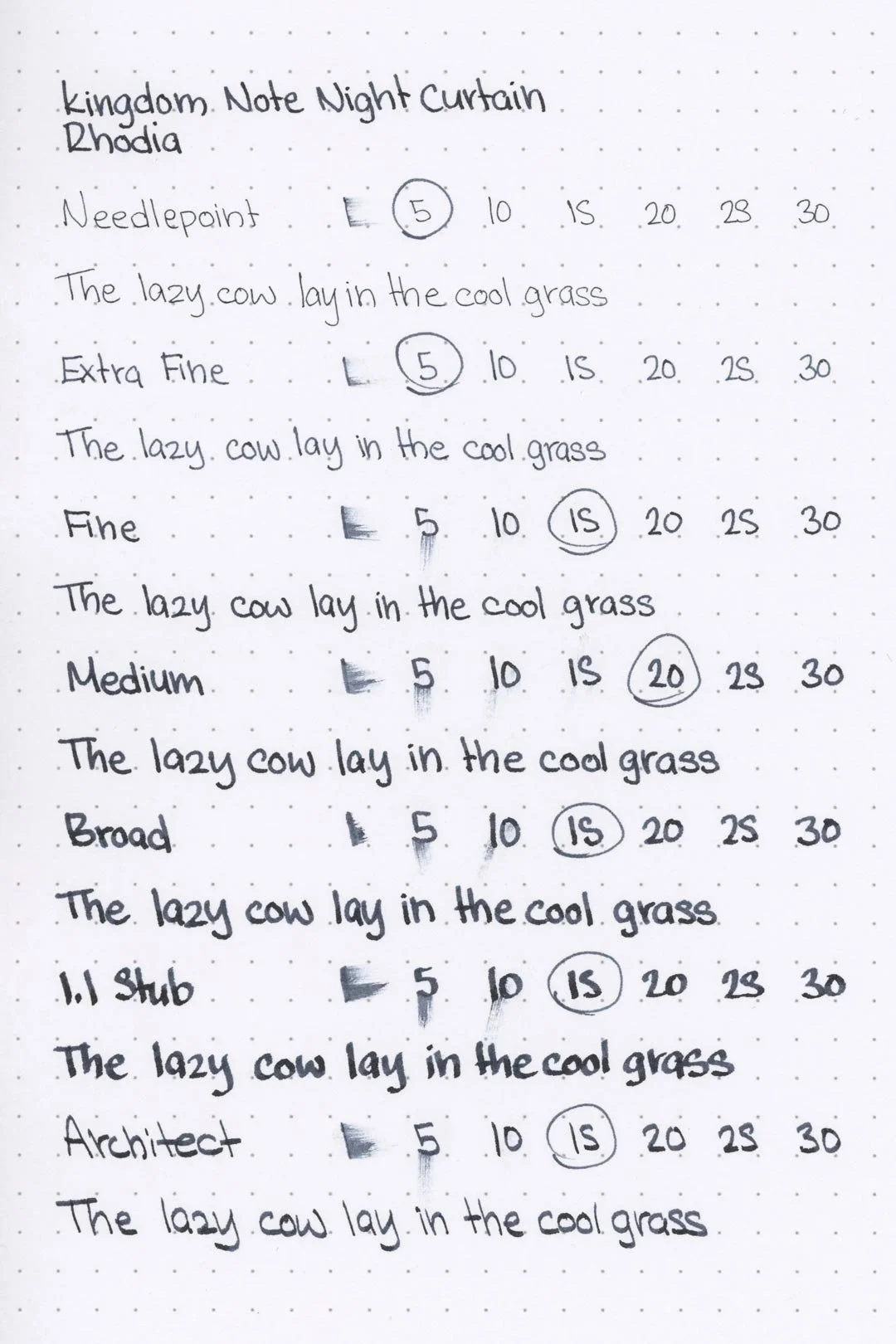 Night Curtain has a medium flow, but I still had concerns that it would feel dry. I wasn’t entirely incorrect: the lubrication is okay and it’s comfortable, but there was a strange “gritty” feeling, for lack of a better way to describe it. It wasn’t bothersome to me, but I could see this being a massive deal-breaker. Otherwise, the ink behaved well. There weren’t any hard starts or skips (you may notice some in the print writing samples, but this was because of paper lifting off of my writing surface). For me at least, everything was fine.