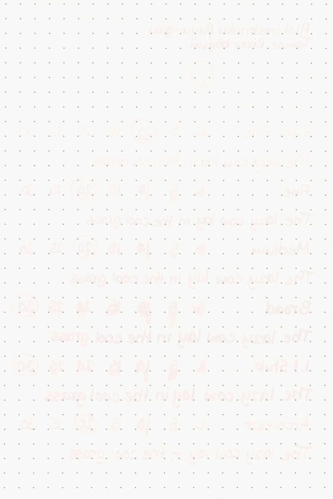 While this ink is generally well-behaved, there was some light feathering in the Leuchtturm, Maruman, and Kokuyo notebooks. There was heavy bleed-through as well in the Kokuyo. There’s also a lot of noticeable feathering around the ink droplets. Fuyu-gaki should be fine with most fountain pen-friendly paper options, but it may pose some issues with the less ink-resistant papers, especially when used with wetter flowing pens. Even with high-quality papers, you may notice light feathering around the dots on letters or small punctuation marks.