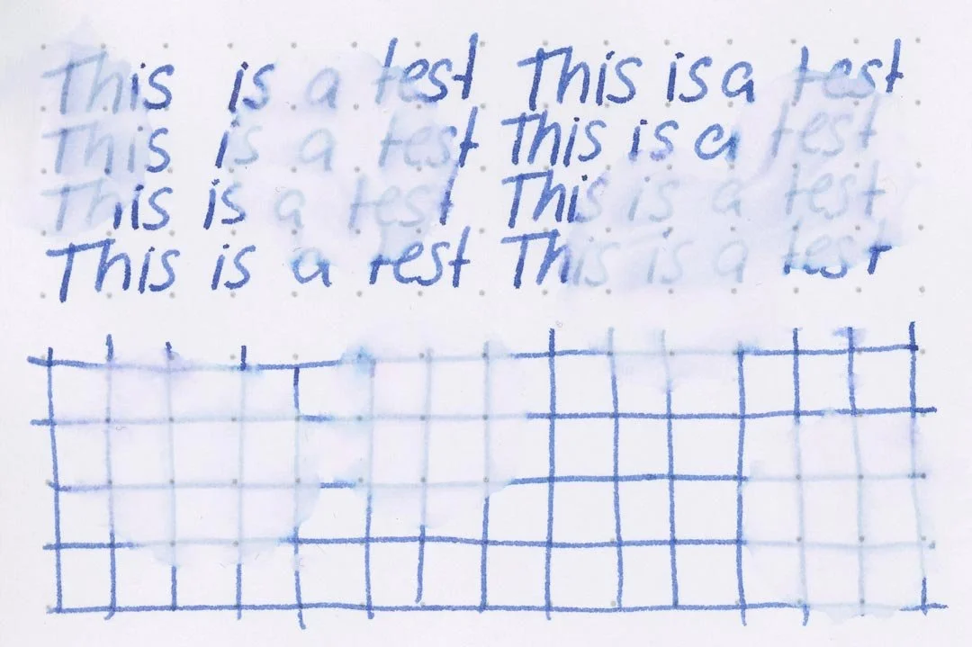 When exposed to water, the ink clouds over, but there’s still enough retention to make anything that was written legible (though messy).